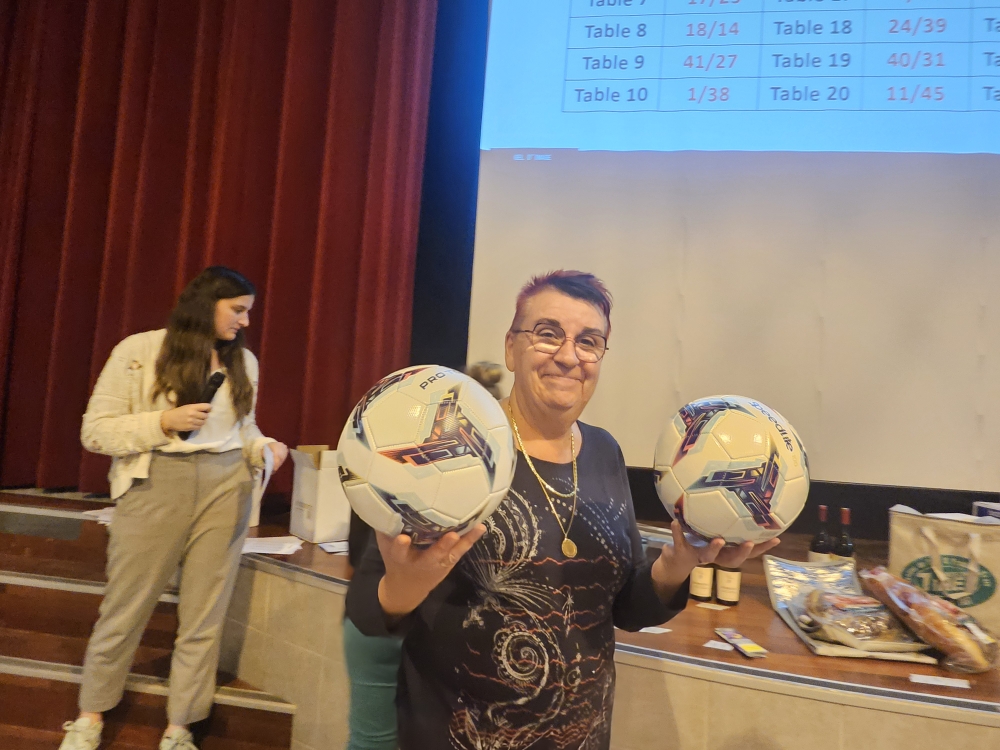 • Le 1er lot, un magnifique jambon cru, a été remis aux vainqueurs du tournoi.