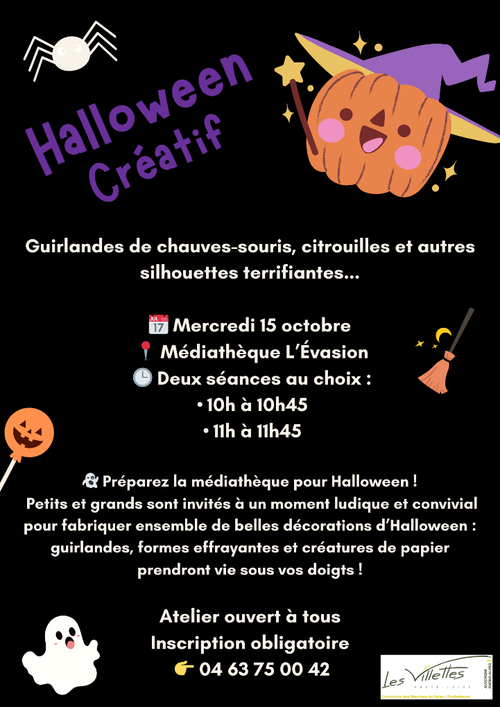 Préparez la médiathèque pour Halloween ! Petits et grands sont invités à participer à un atelier créatif pour fabriquer ensemble des guirlandes décoratives aux couleurs d’Halloween. Le mercredi 15 octobre à la médiathèque. Deux séances sont prévues :