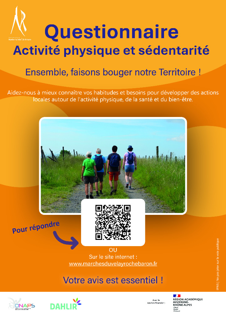 Plus d’information sur notre site internet : https://www.marchesduvelayrochebaron.fr/actualites/questionnaire-activite-physique-et-sedentarite/